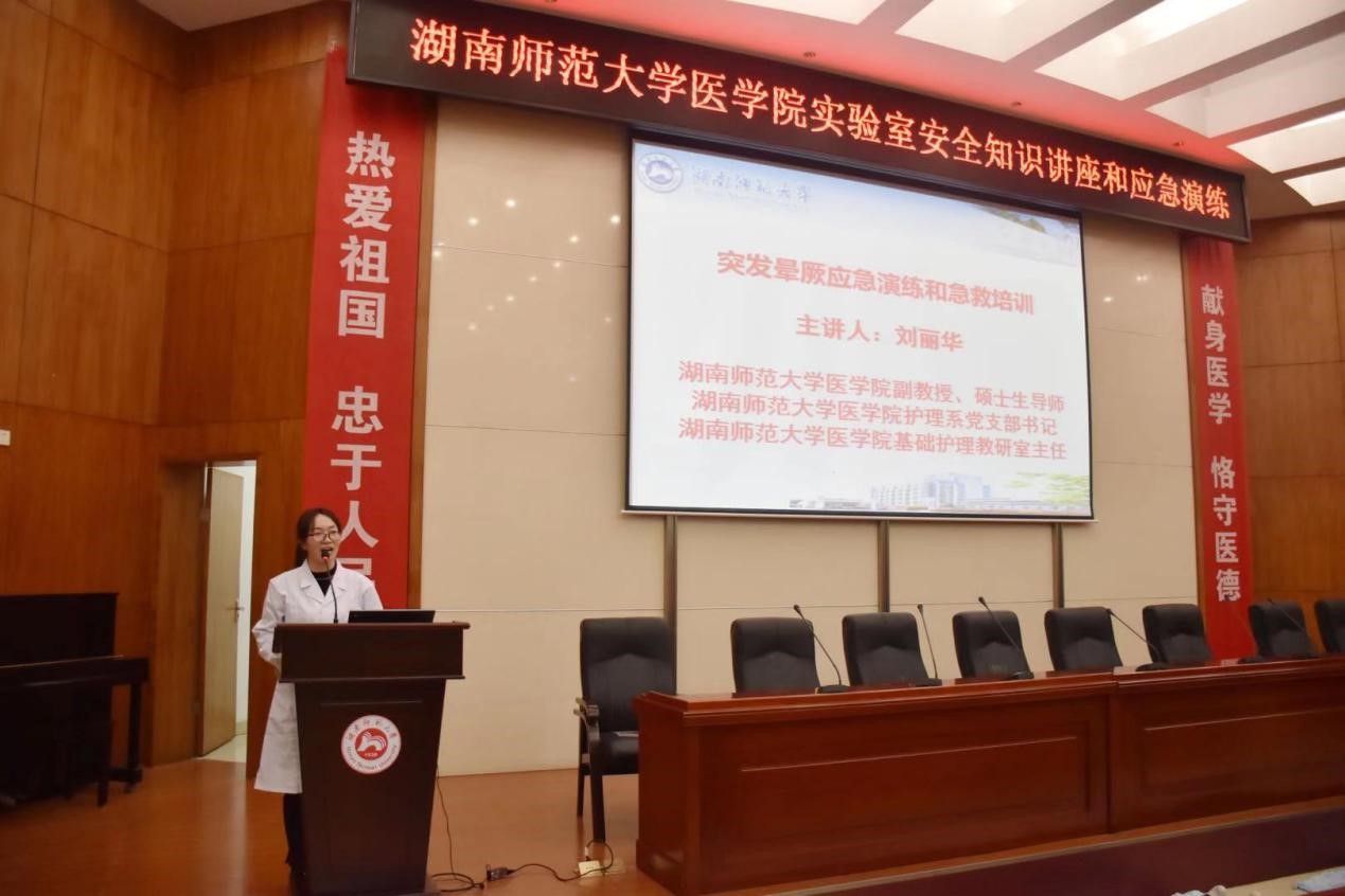 11月19日下午,我院举行了突发性晕厥应急演练及心肺复苏技能现场讲座。讲座由护理系支部书记刘丽华博士主持,我院党委书记鄢朝晖、院长何祖平、校资产与实验室管理处副处长蒋能胜、实验管理科科长罗万才及我院全体教职工、部分研究生及本科生观摩了此次演练并现场听取了讲座。